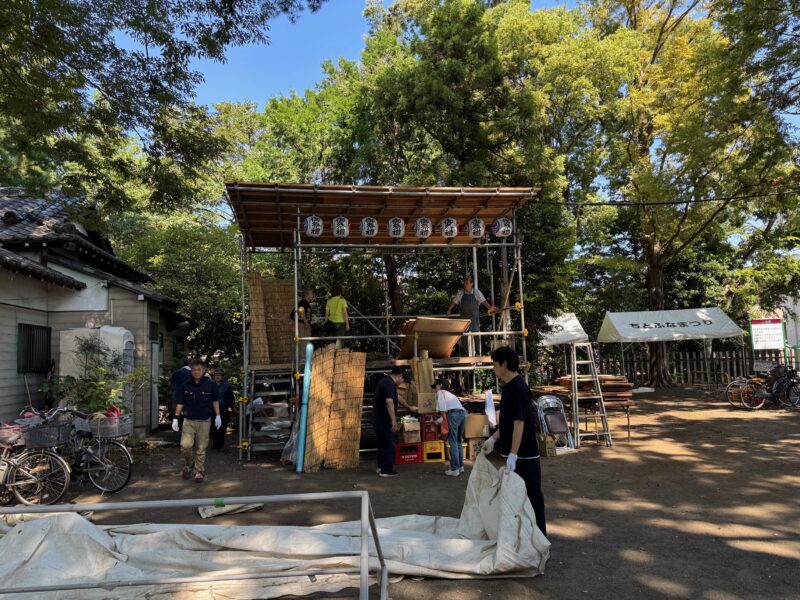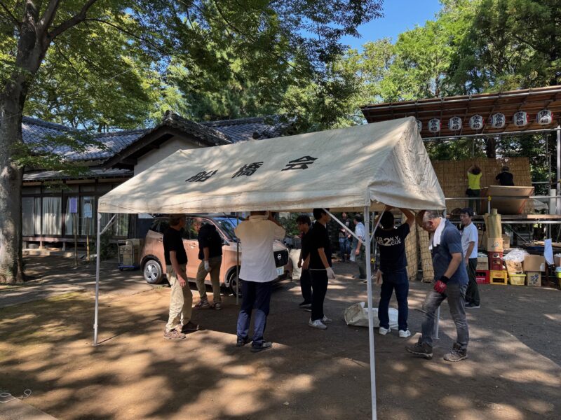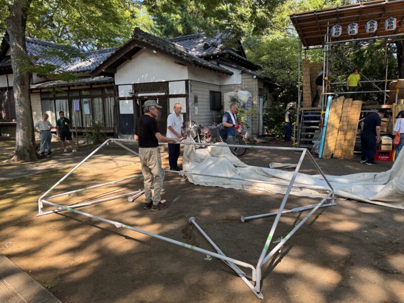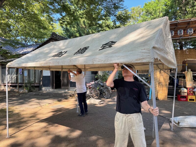 船橋神明神社秋季例大祭(9月27、28日)のお知らせ 2025.09.262025.09.30 世田谷区船橋地区の氏神様である船橋神明神社の宵宮(9月27日)及び例大祭(9月28日)に開催されます。 船橋会では神社境内に模擬店を出店するとともに、船橋4丁目の神酒所(神輿休憩所)を担当します。 本番にそなえて、模擬店のテント張り(9/26) 昨年の様子 神酒所(船橋4丁目) 船橋会の模擬店(神明神社境内) 昨年の様子はこちらからも