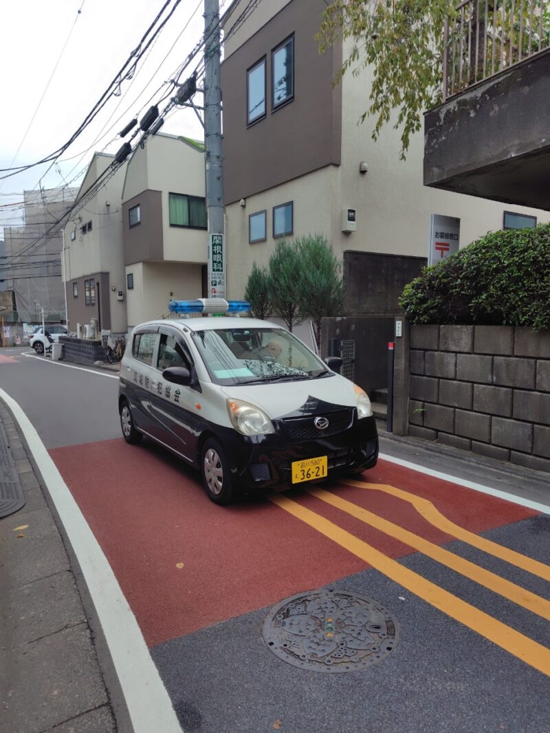 ※青パト:船橋会では、成城防犯協会から青色回転灯装備車両(通称:青パト)をお借りし、警察の講習を受講した役員が運転して、この活動を行っています。