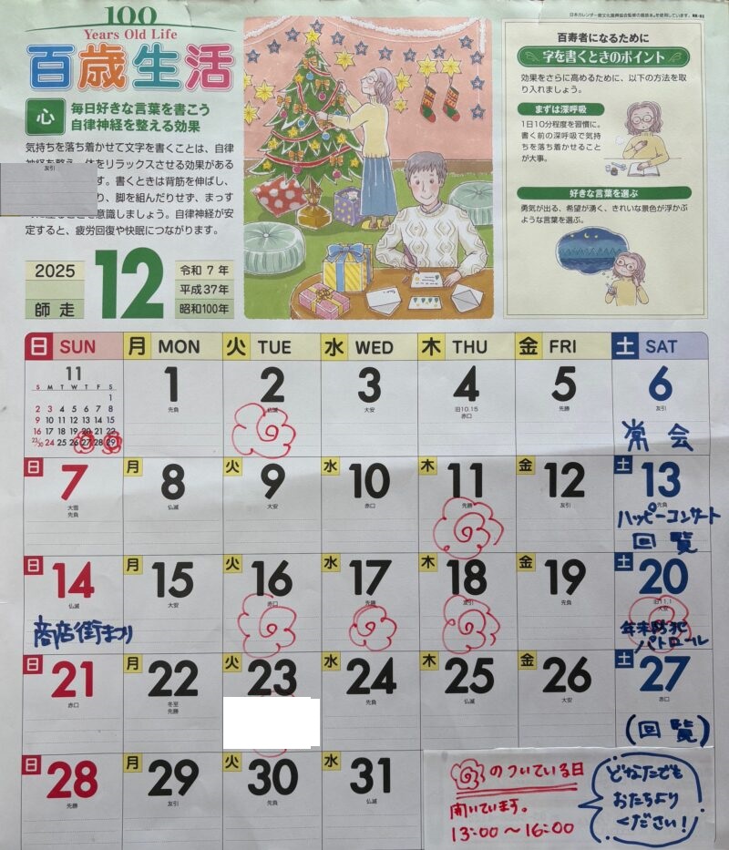 船橋会事務所では、役員のボランティアによる運営のため、毎月特定日での開所となっています。