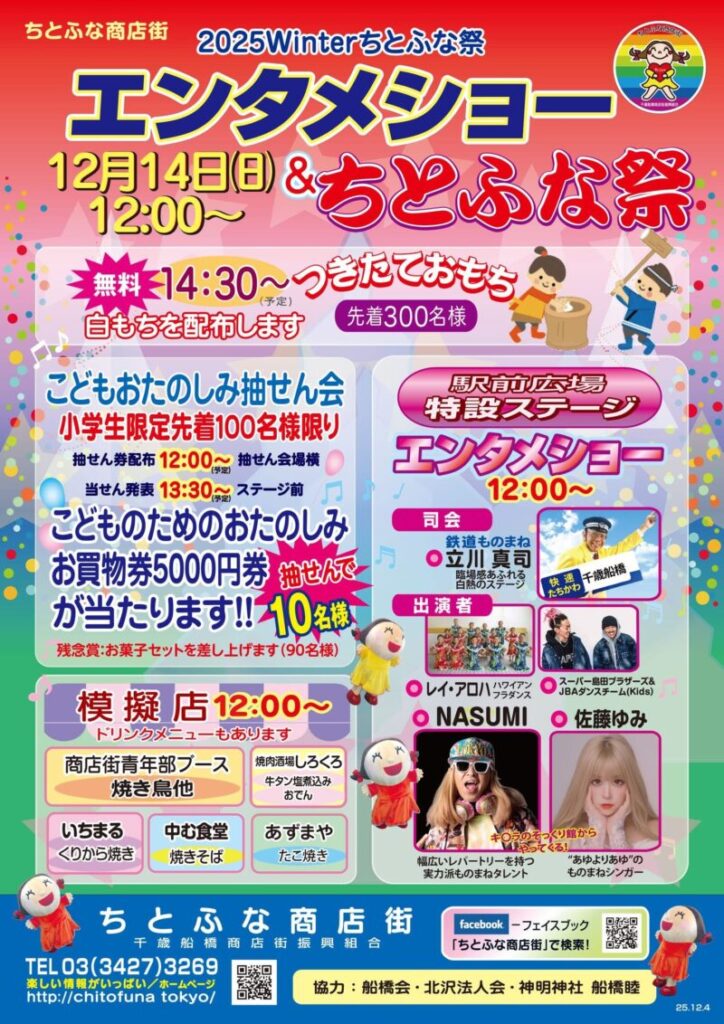 船橋会女性部は、12月14日に開催される「2025Winterちとふな祭(主催:ちとふな商店街)」に協力し、模擬店を出店します。