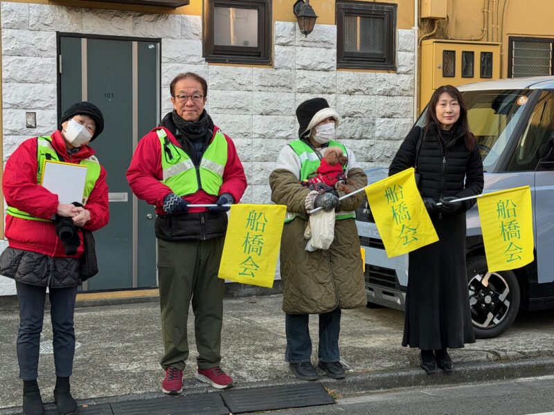 令和7年度3学期の挨拶キャンペーンは、1月9日(金)と13日(火)の2日間です。船橋会役員は、朝の通学時間帯、船橋小学校の通学路の4ヵ所にて、学校に向かう生徒・学生さんたち、町の人々と挨拶を交わします。