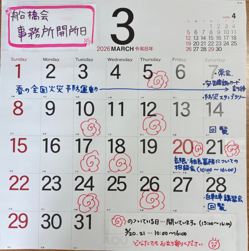 3月 船橋会事務所開所日