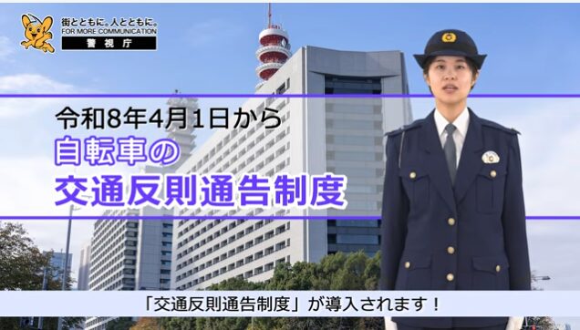 令和8年4月1日から自転車の交通反則通告制度が導入されますので、警視庁制作の解説動画を掲載します。